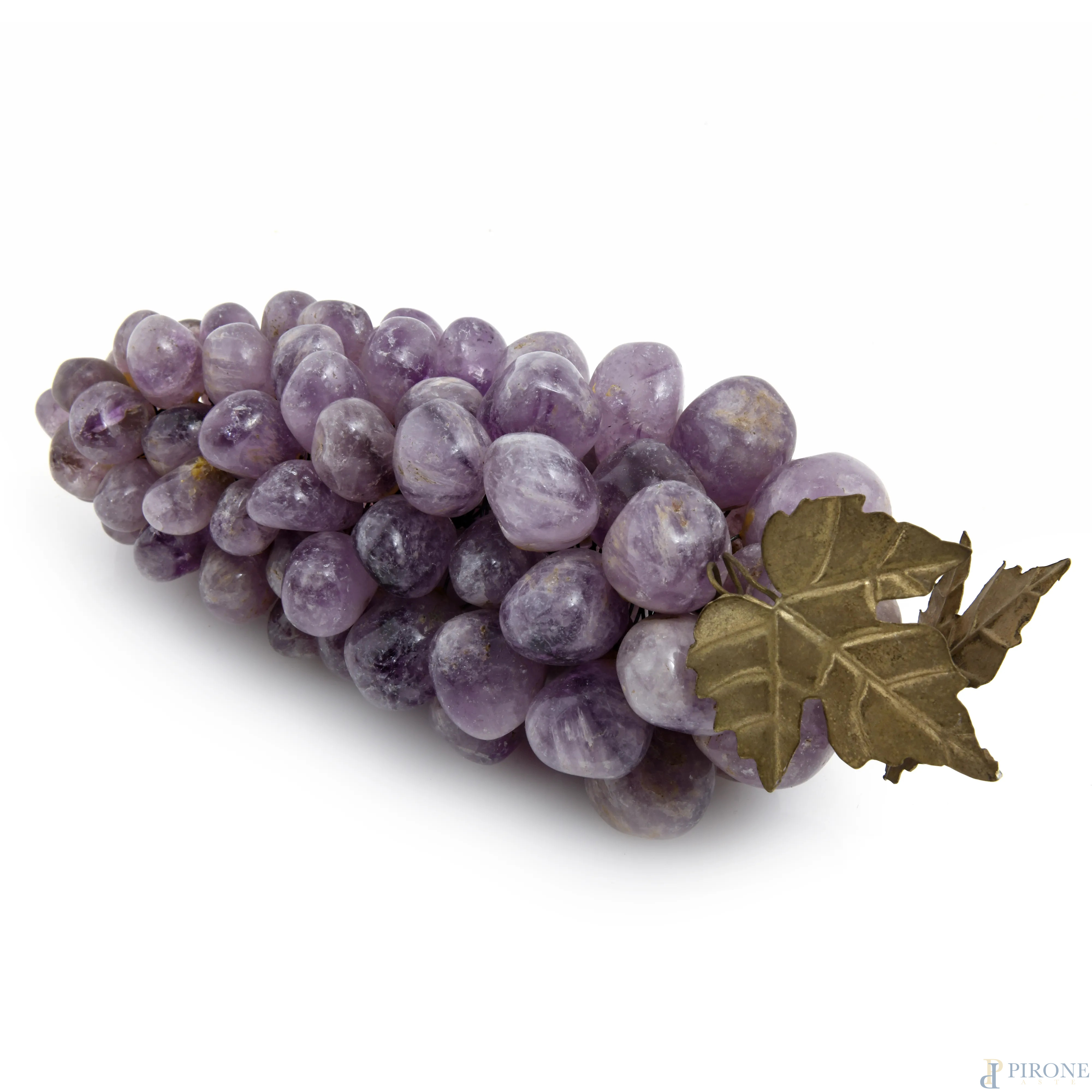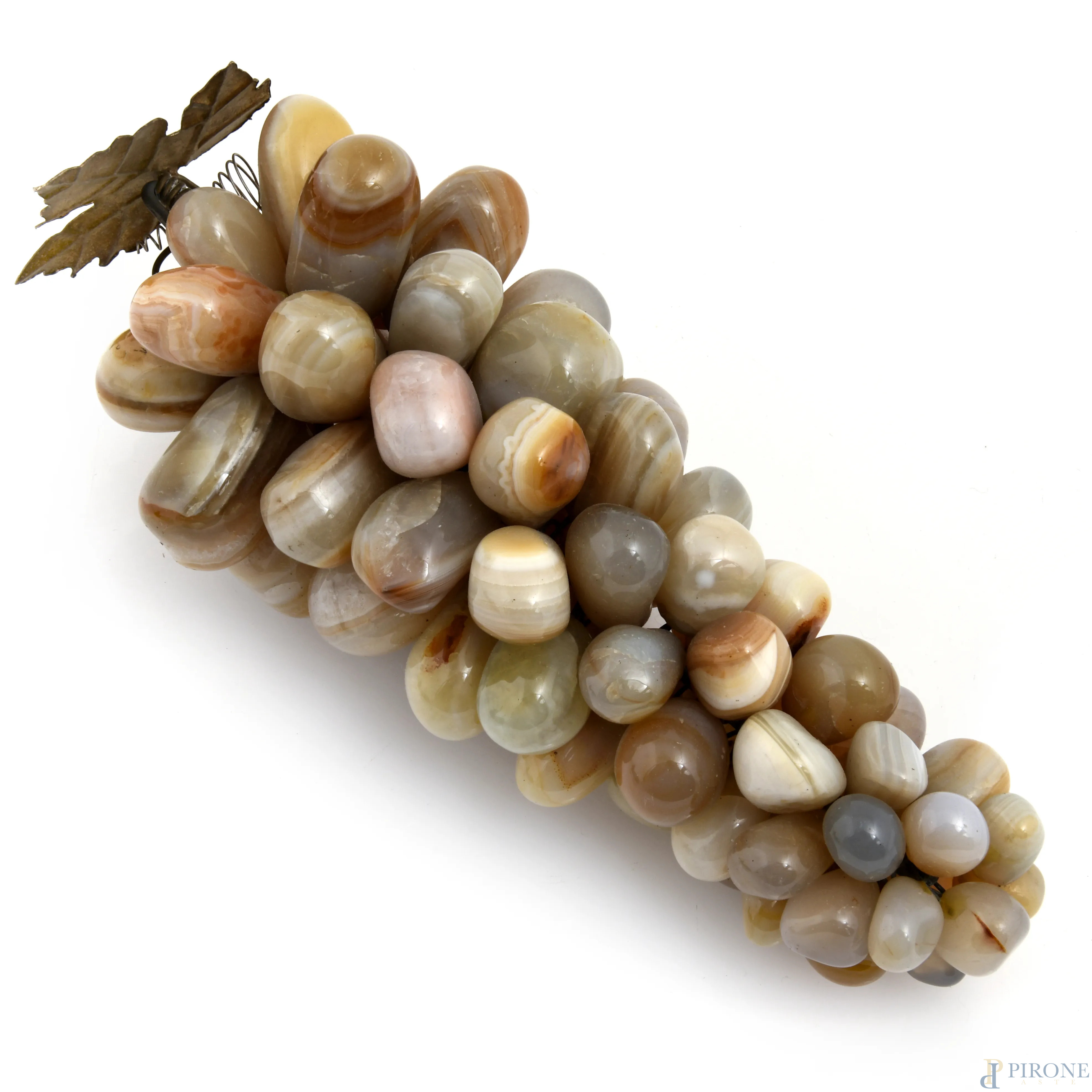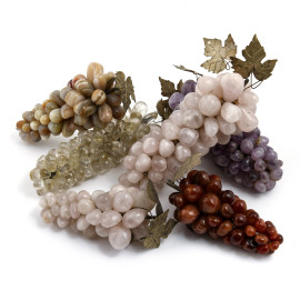 Lotto composto da grappoli d'uva in pietre dure e metallo, XX secolo, lunghezza massima cm 26, (segni di usura, difetti)
