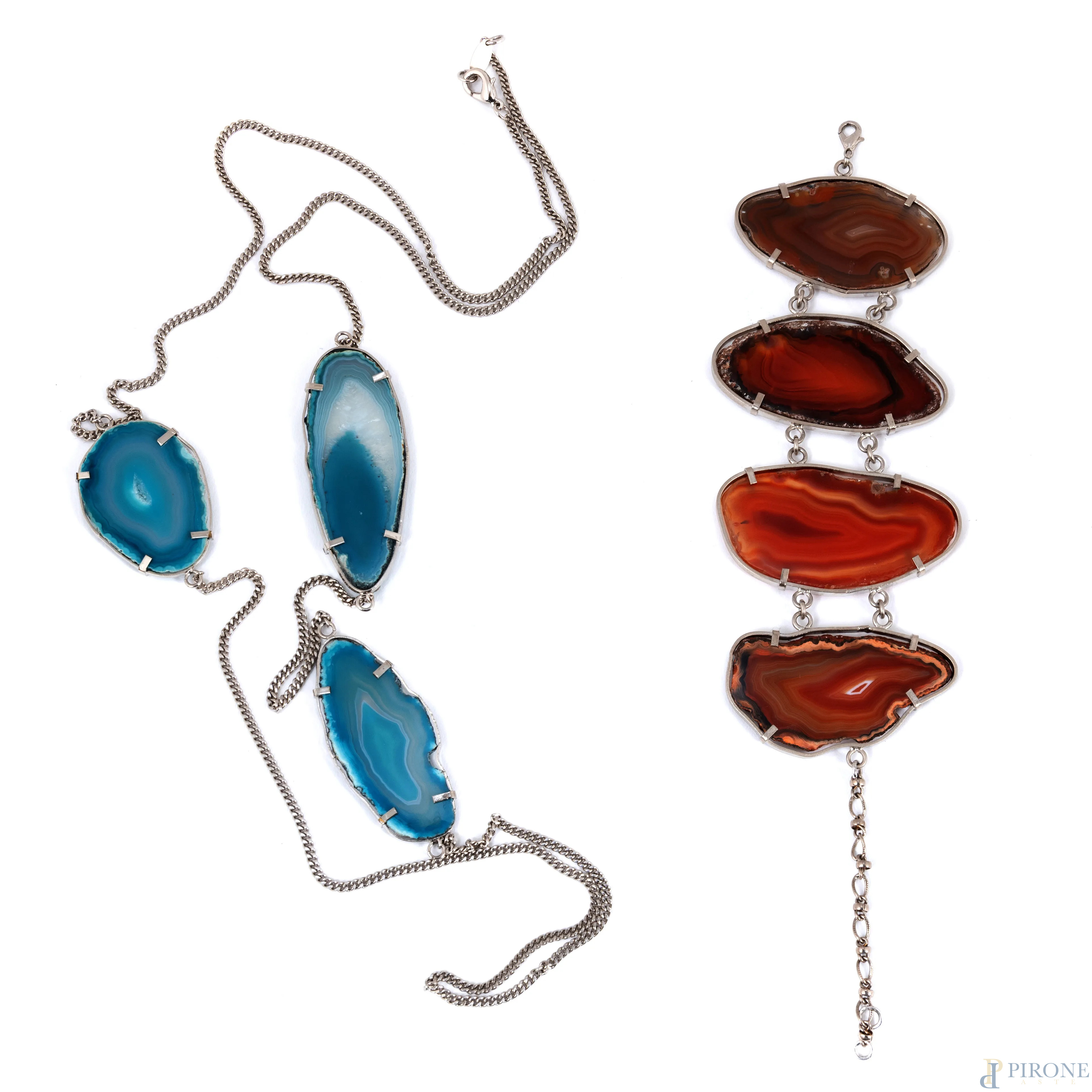 Lotto composto da una collana (lunghezza cm 126) e un bracciale (lunghezza cm 27) con agate