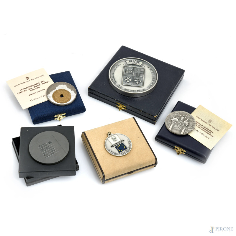 Lotto di cinque medaglie, XX secolo, misura massima diametro cm 8,5