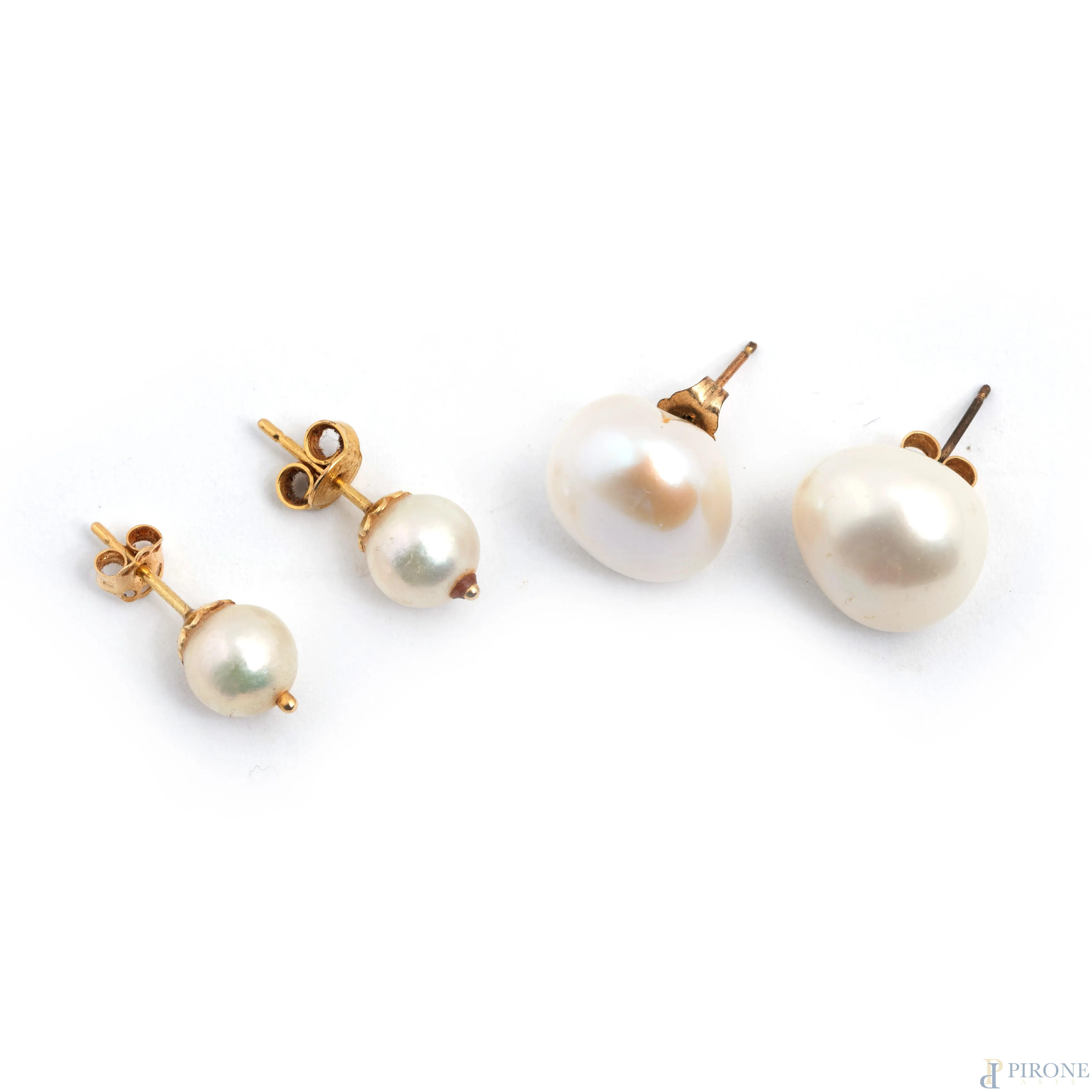 Lotto di due paia di orecchini con perle, misura massima delle perle 12-13, (segni di usura)