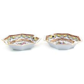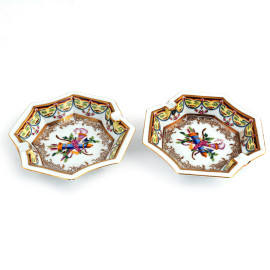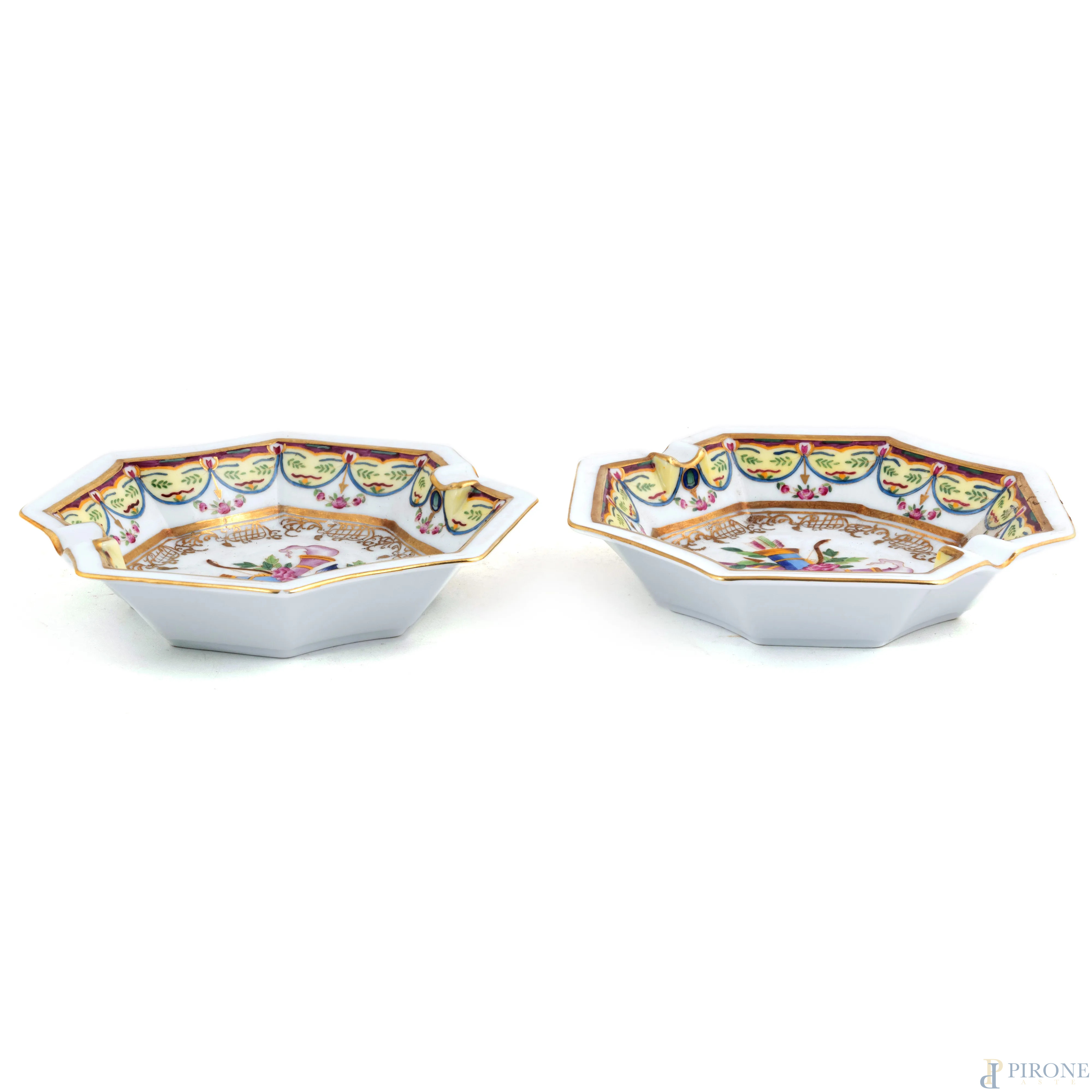 Lotto di due posacenere in porcellana, XX secolo, cm 3x16,5, (segni di usura)