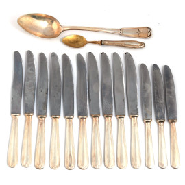 Lotto di posate in argento e metallo argentato, XX secolo, peso lordo complessivo gr 1160, ( segni di usura, difetti)