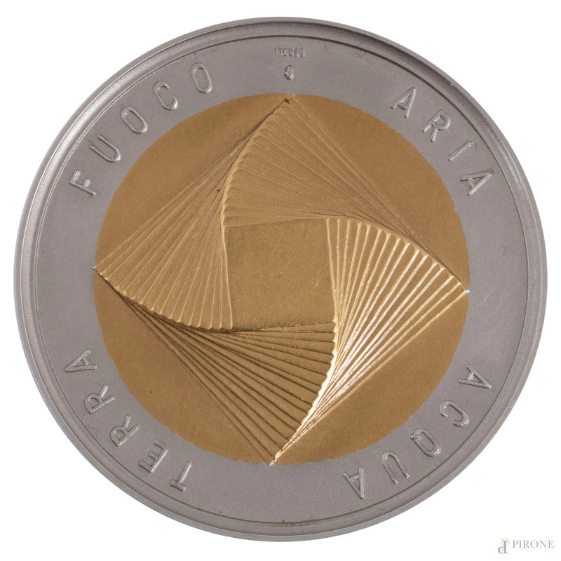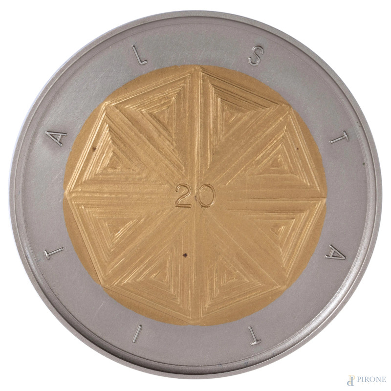 Mario Ceroli x Italstat, Moneta bimetallica in cupronichel e bronzital, diametro cm 5