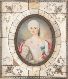 Miniatura raffigurante gentildonna con cornice in osso, XIX secolo, cm 14x12, (segni di usura, scalfiture)