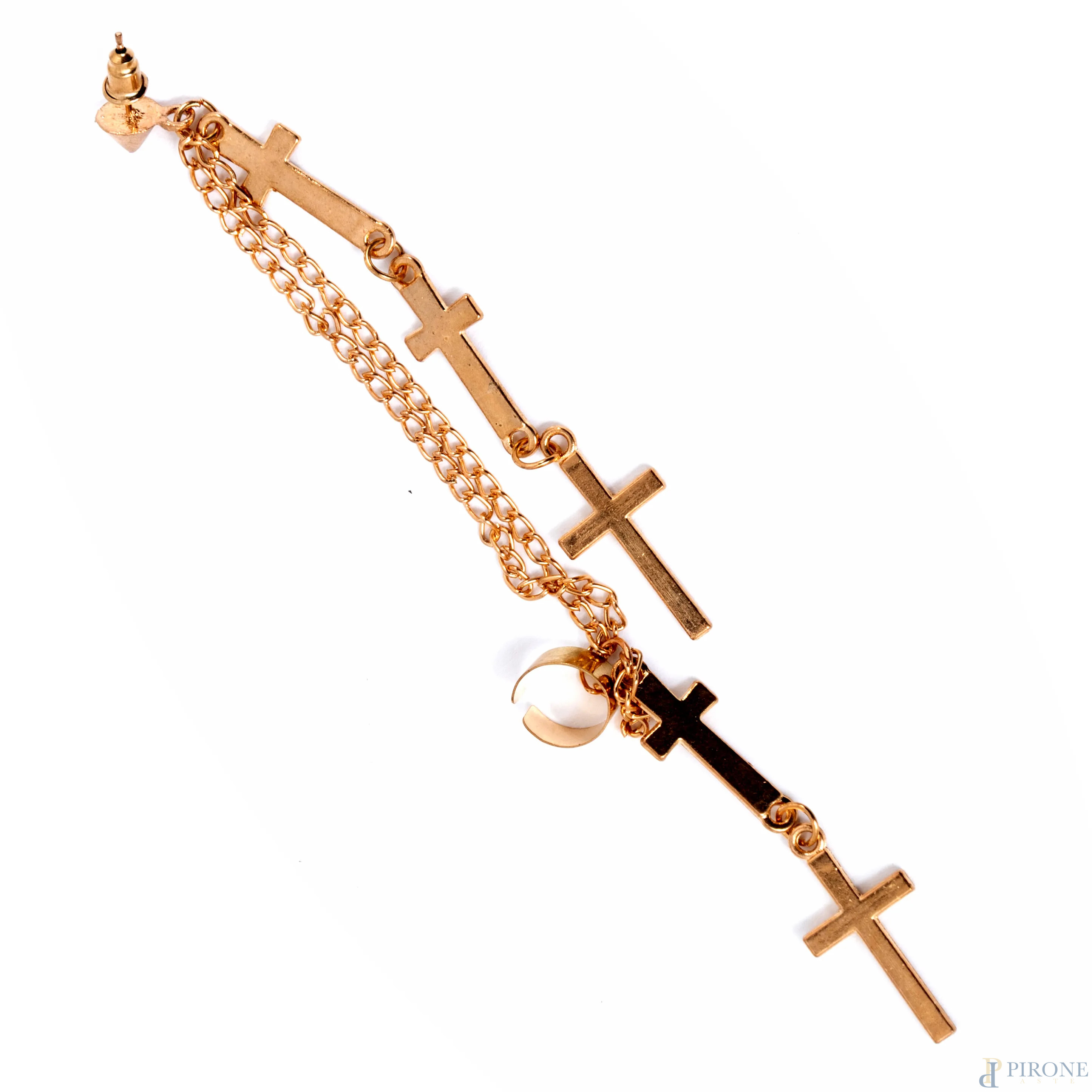 Orecchino a pendente con ciondoli a croce in metallo dorato, lunghezza cm 13