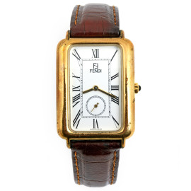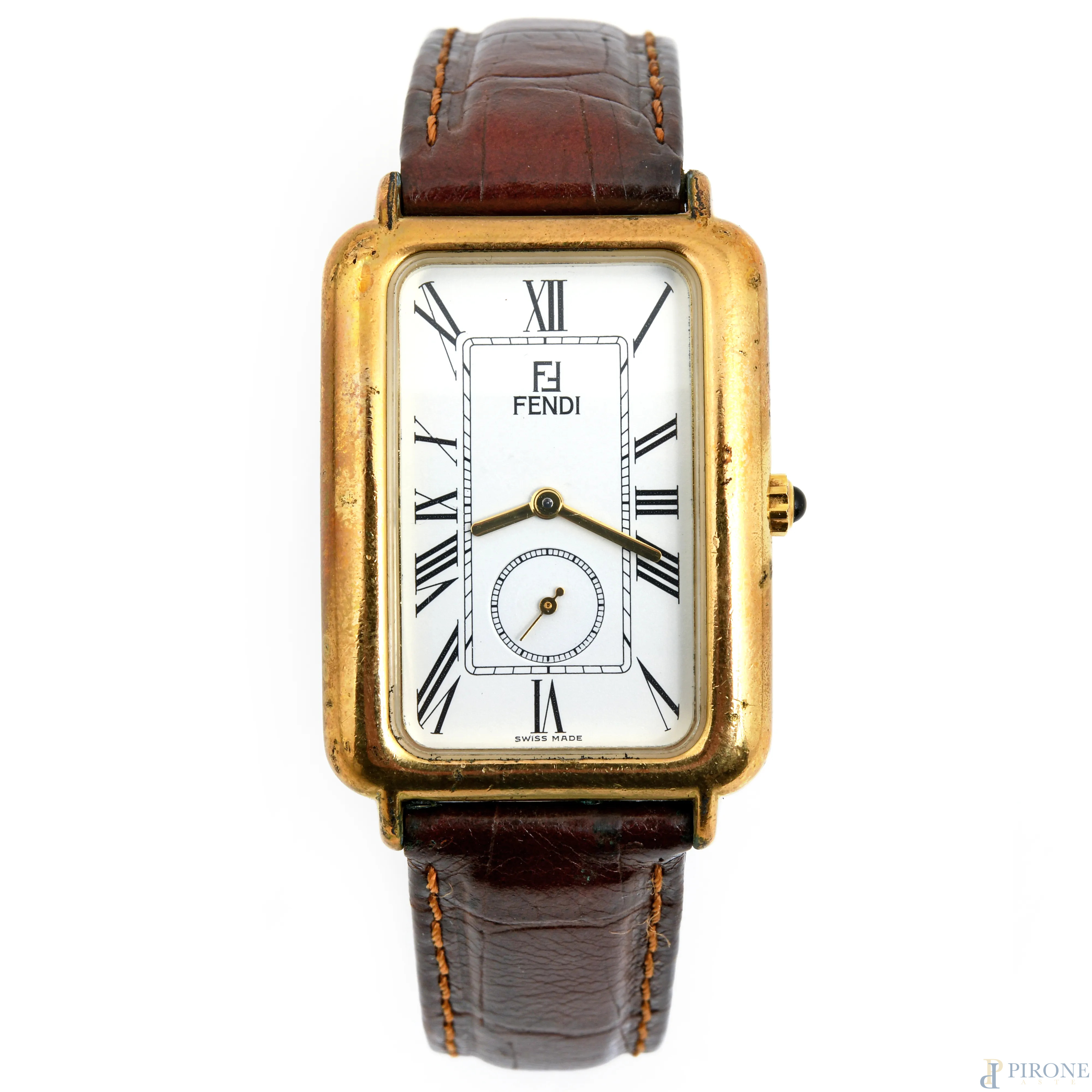 Orologio Fendi al quarzo con cinturino in cuoio marrone, misura cassa 3x4, lunghezza cinturino cm 23, (segni di usura, graffi, screpolature, difetti, da revisionare)