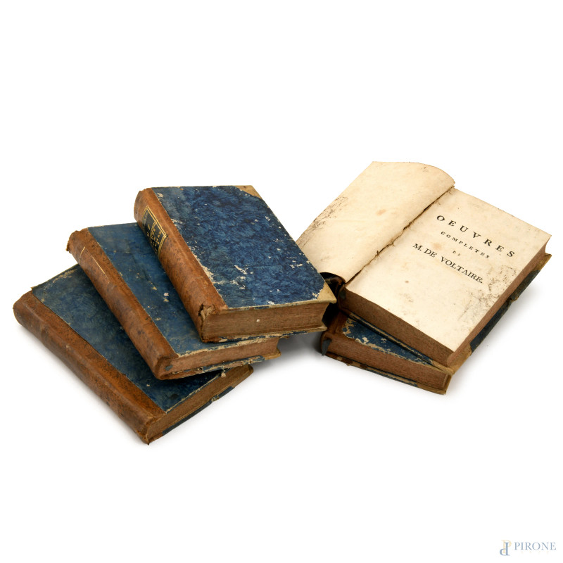Ouvres Completes de M. de Voltaire, 100 voll., 1791-1792, (segni di usura, tracce di umidità, strappi, tagli, rotture, difetti)