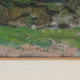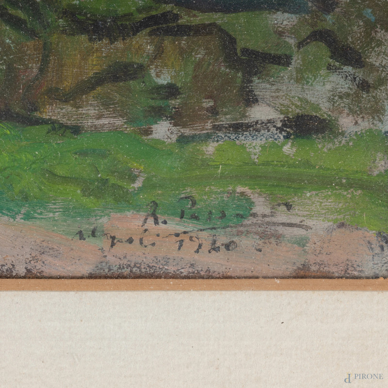 Paesaggio, XX, olio su doppia tavoletta di compensato, cm 20,5x31,5, firmato e datato "Napoli 1946" in basso a destra, entro cornice