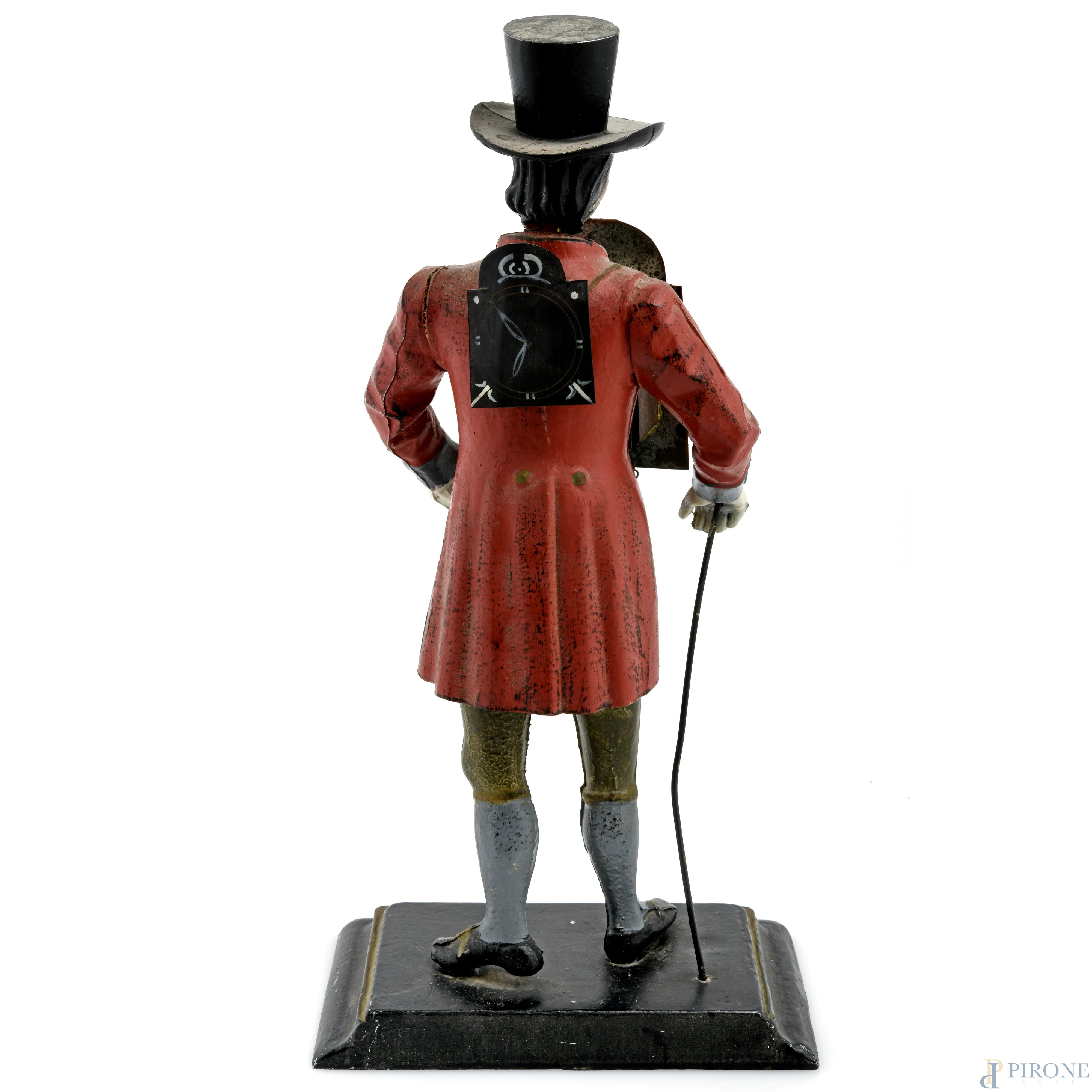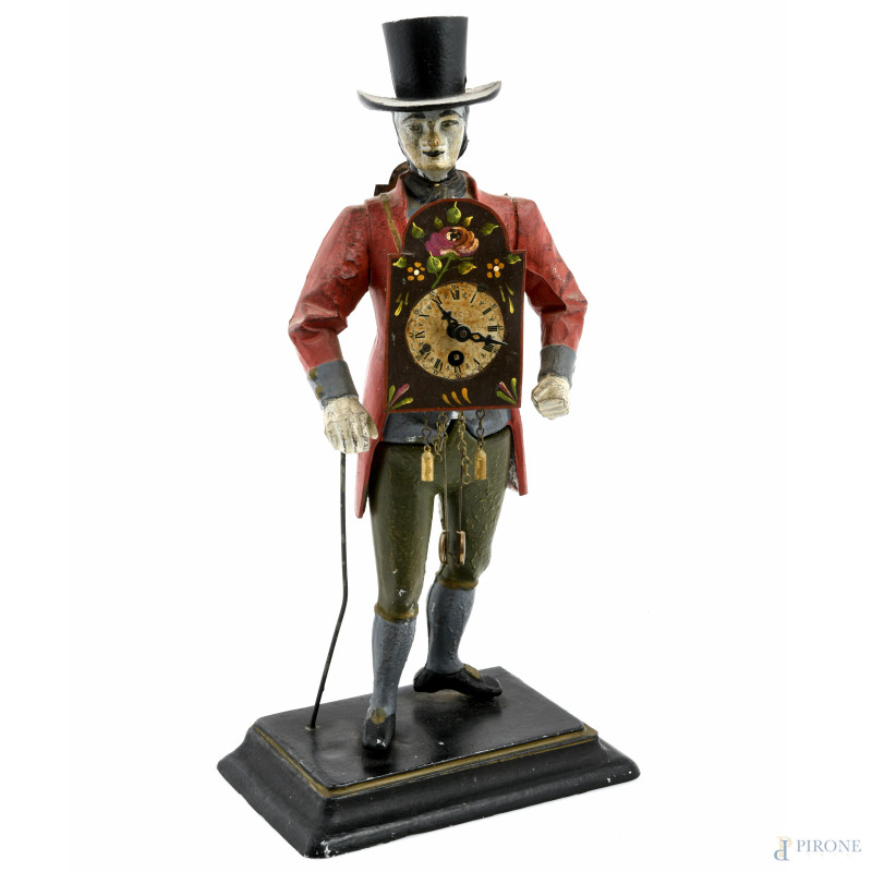 Pendolo antropomorfo in metallo policromo, XX secolo, altezza cm 41, (segni di usura, difetti)