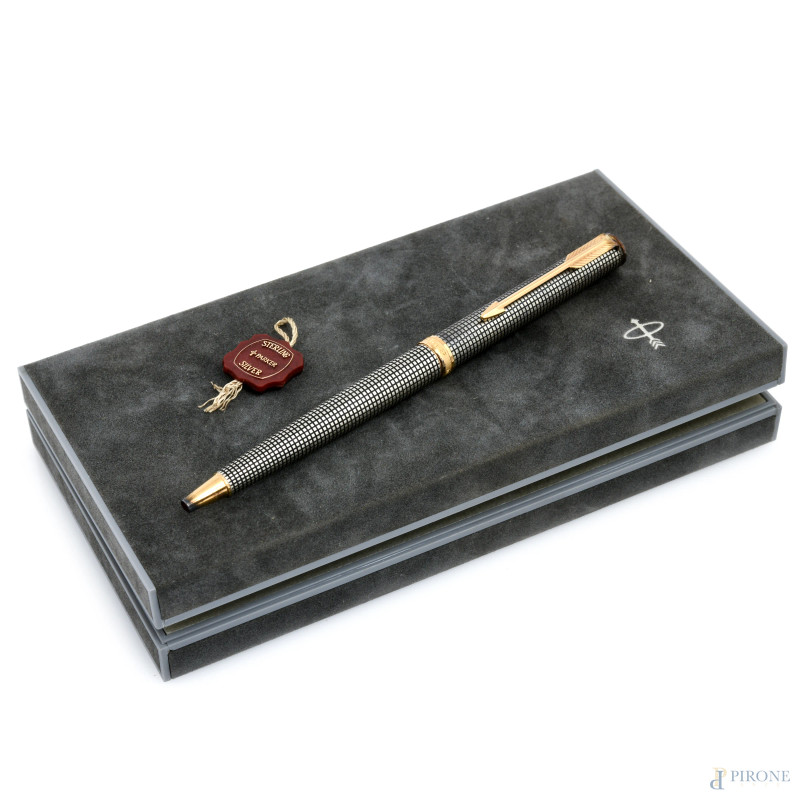 Penna a sfera Parker in argento 925/000, lunghezza cm 13, (segni di usura, da revisionare)