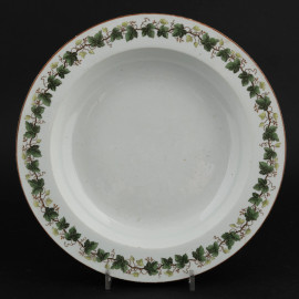 Piatto in porcellana Meissen con decoro all'orlo a motivi di tralci d'uva, XX secolo, diametro cm 30,5, (segni di usura)