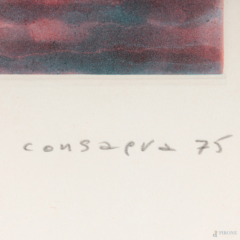 Pietro Consagra (1920 – 2005), Diaspro, litografia a colori su carta es. II/X, cm 70x48, titolato in basso a grafite, firmato e datato "75" a grafite in basso a destra, entro cornice, (bruniture, lievi segni di usura)
