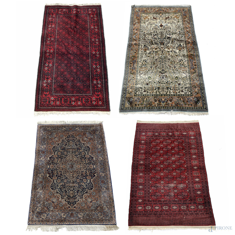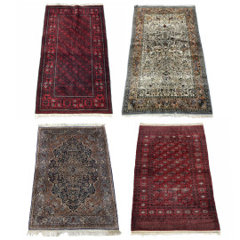 Quattro tappeti: cm 146x250; cm 170x90; 119x193; 121x191. (segni di usura, difetti)