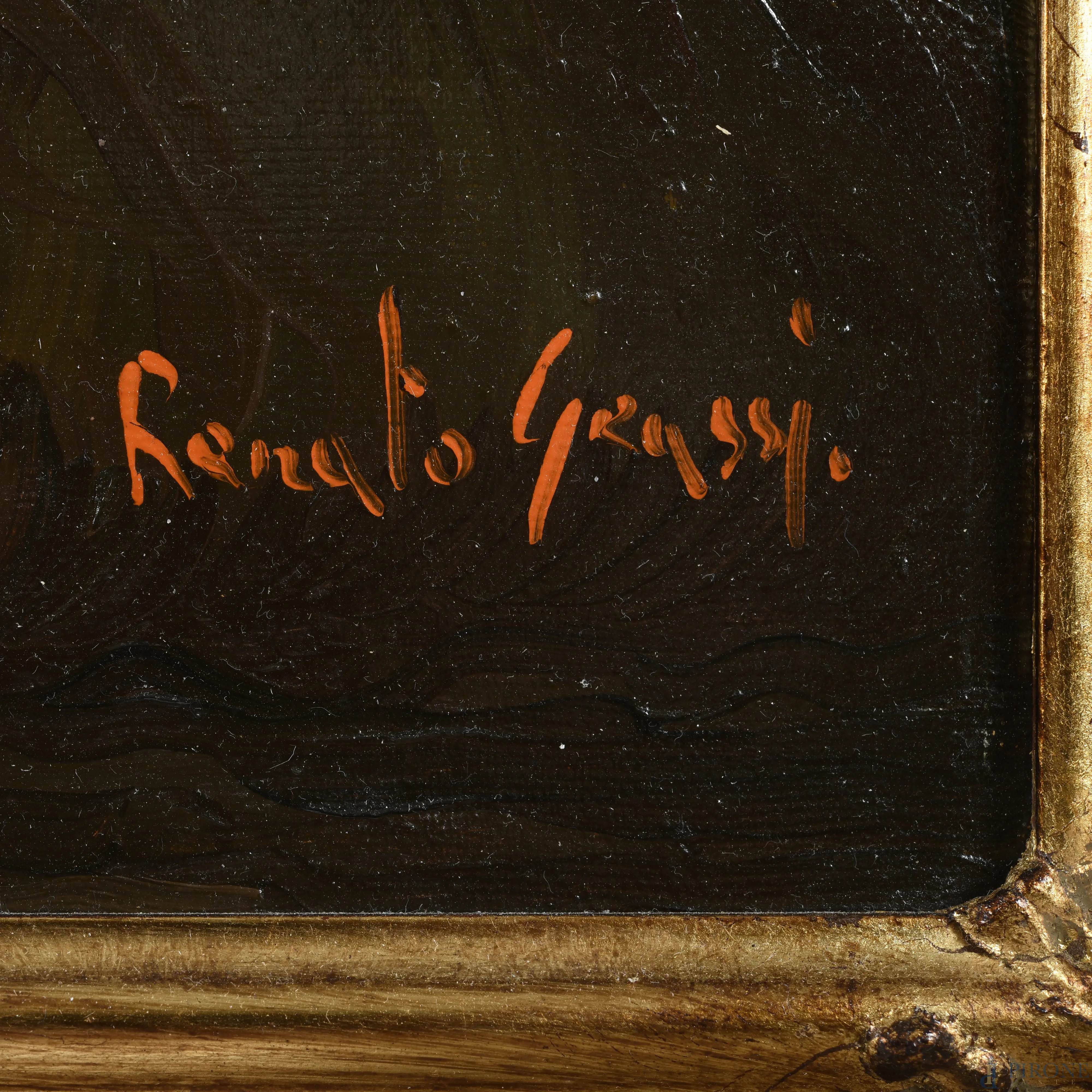 Renato Grassi (1940-1985), Pensieri, olio su tela, cm 50x70, firmato in basso a destra e al retro, entro cornice