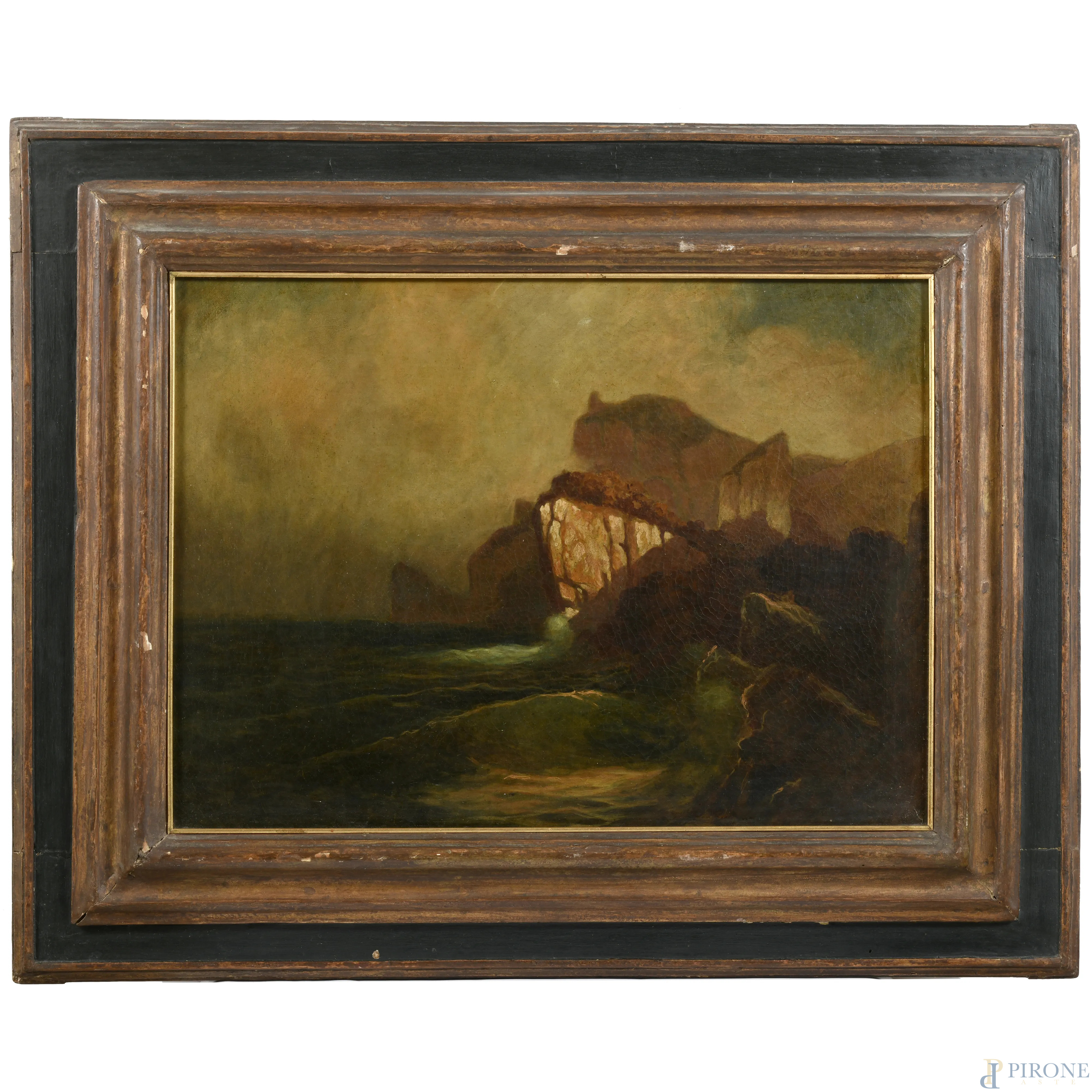 Scogliera, XIX secolo, olio su tela, cm 45x60, entro cornice, (lieve craquelure)