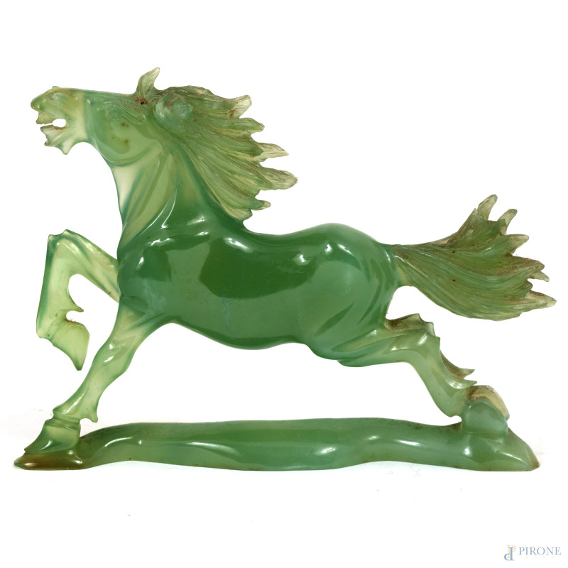 Scultura in giada raffigurante cavallo, XX secolo, cm 11x15x3
