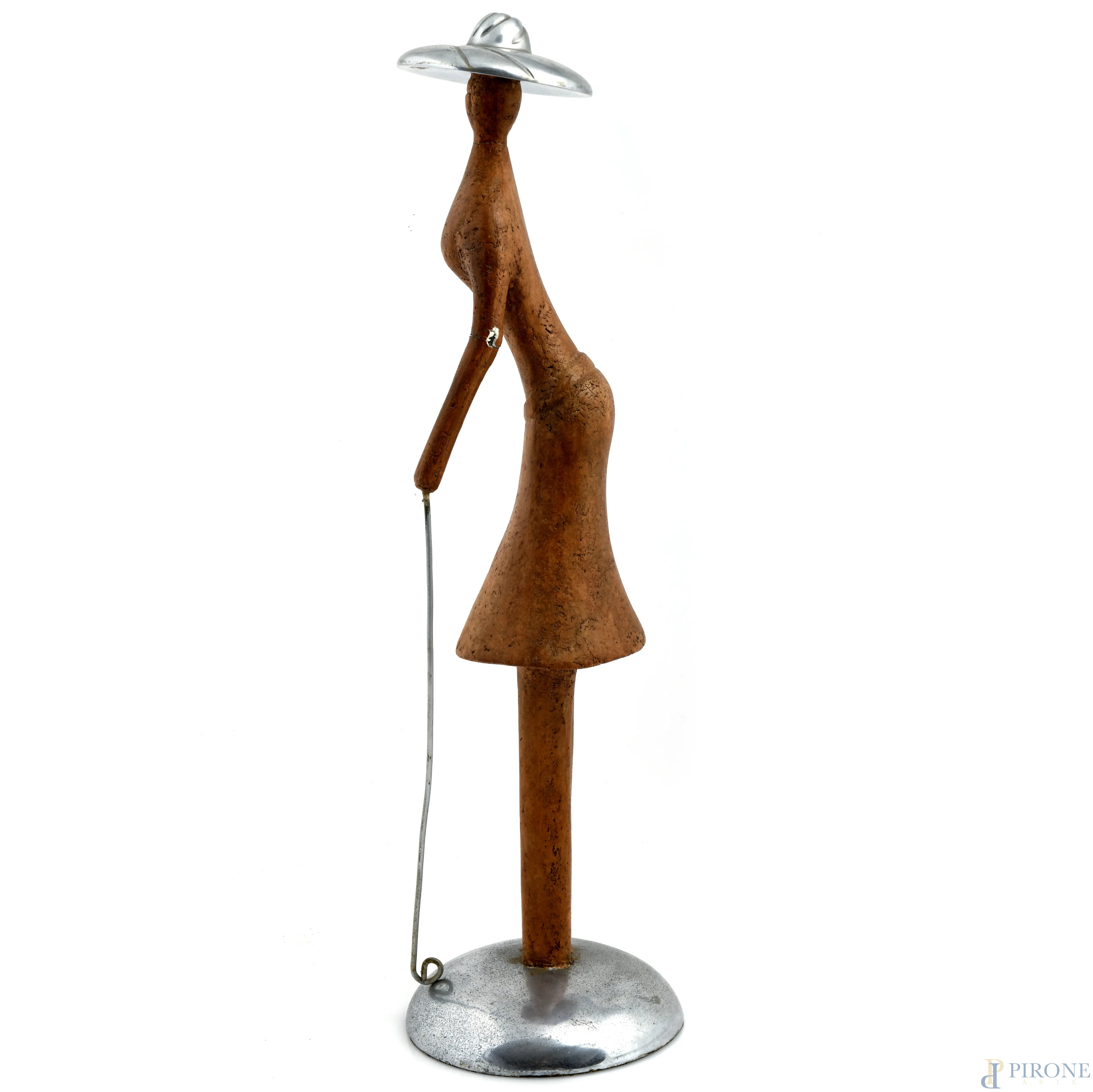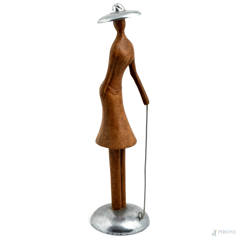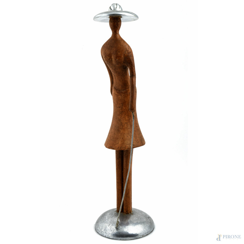 Scultura in metallo e gesso dipinto, XX secolo, altezza cm 53,5, (segni di usura, difetti, rotture, mancanze)