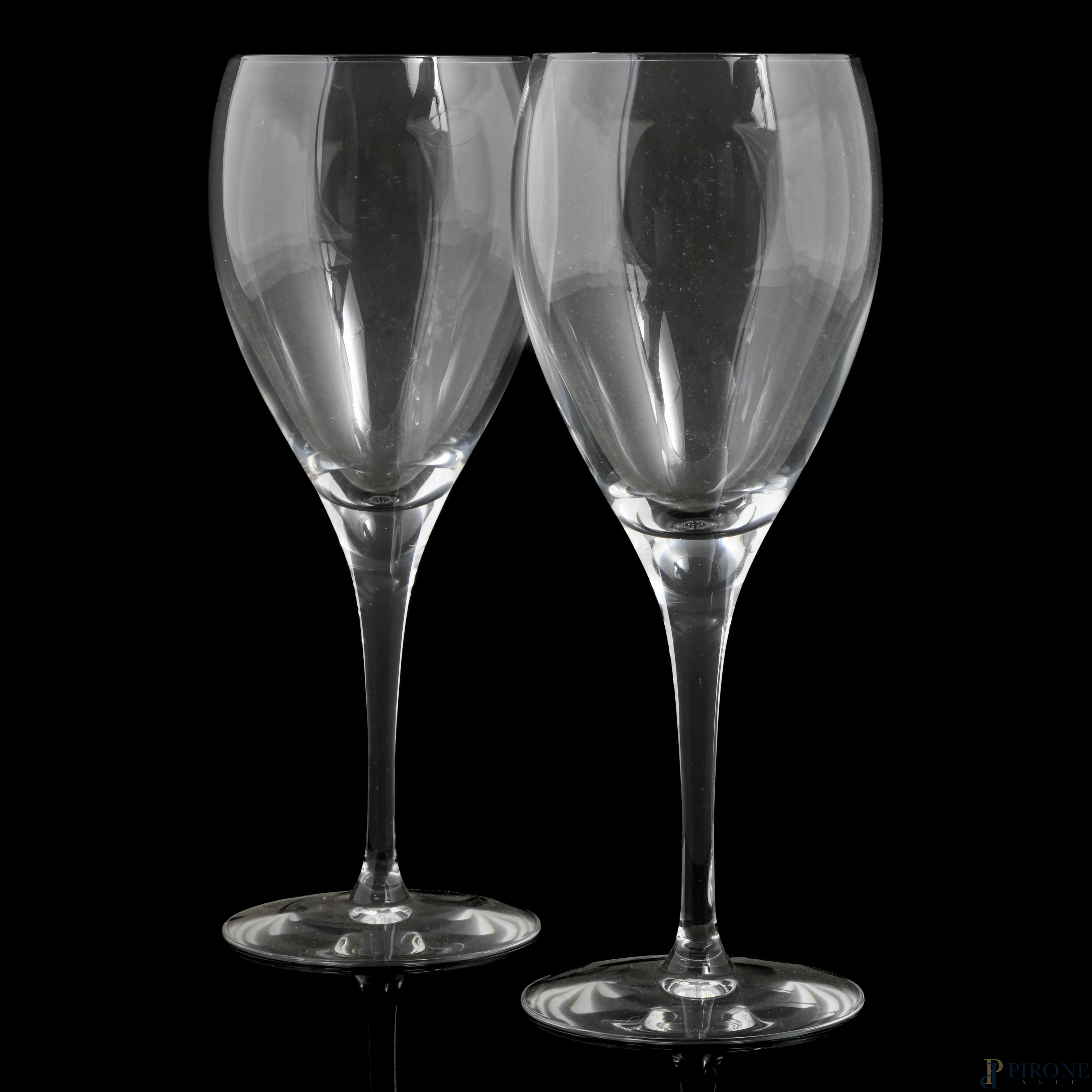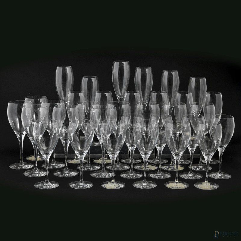 Servizio Christofle composto da ventuno bicchieri da vino e undici flutes, XX secolo, altezza massima cm 22, ( segni di usura)