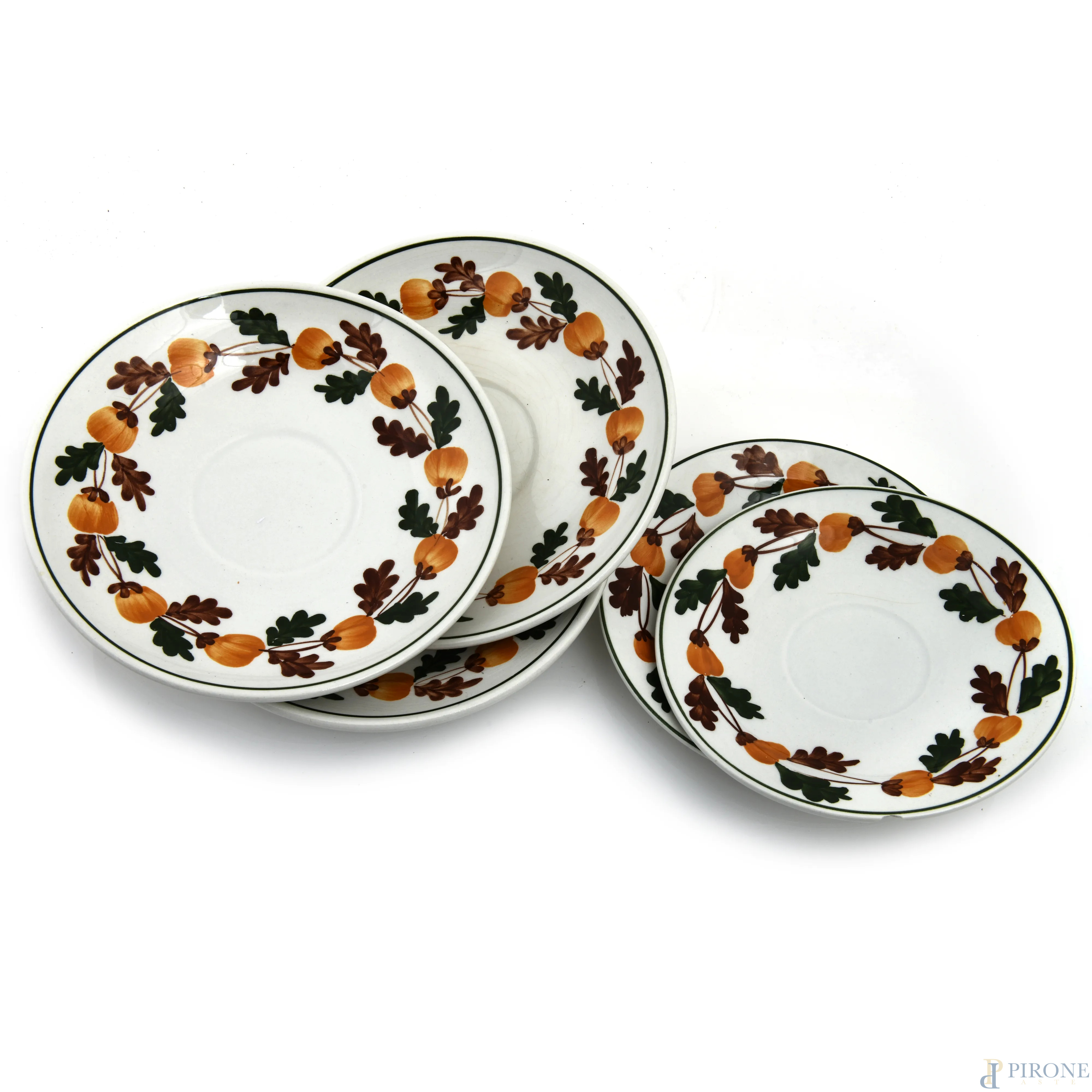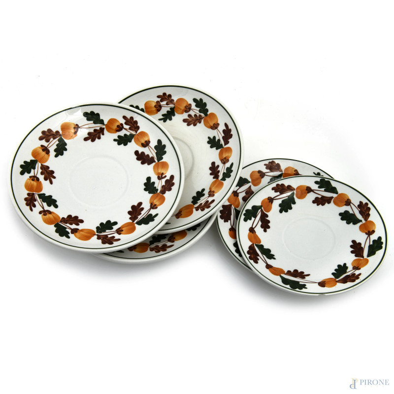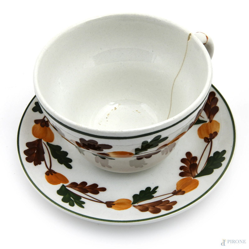Servizio in ceramica Ginori composto da quattro tazze, tre piatti e due piattini, XX secolo, misure massime altezza cm 7,5, diametro massimo cm 18 (difetti, scalfiture, rotture, restauri)