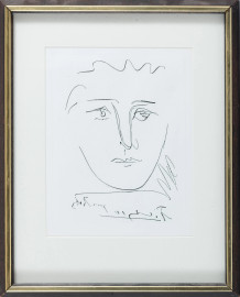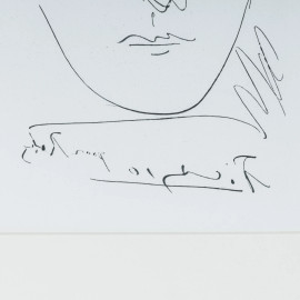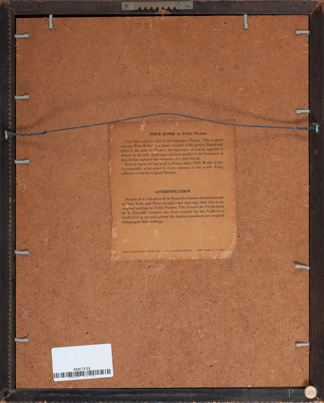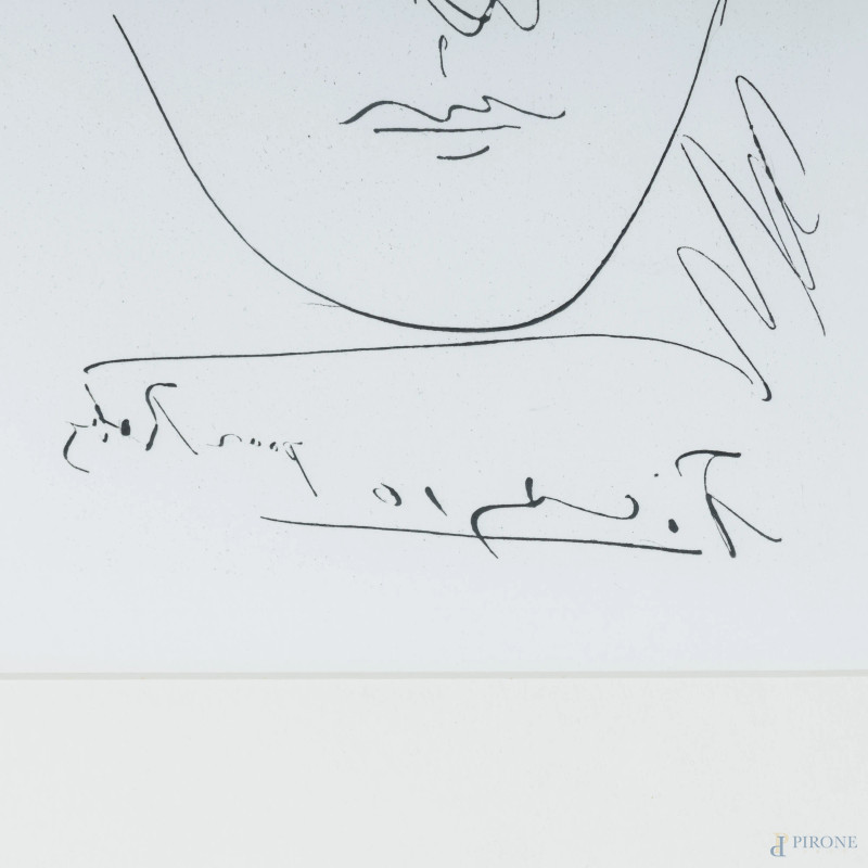 Stampa da Pablo Picasso, Pour Robie, XX secolo, cm 24,5x19, entro cornice, (segni di usura)
