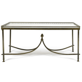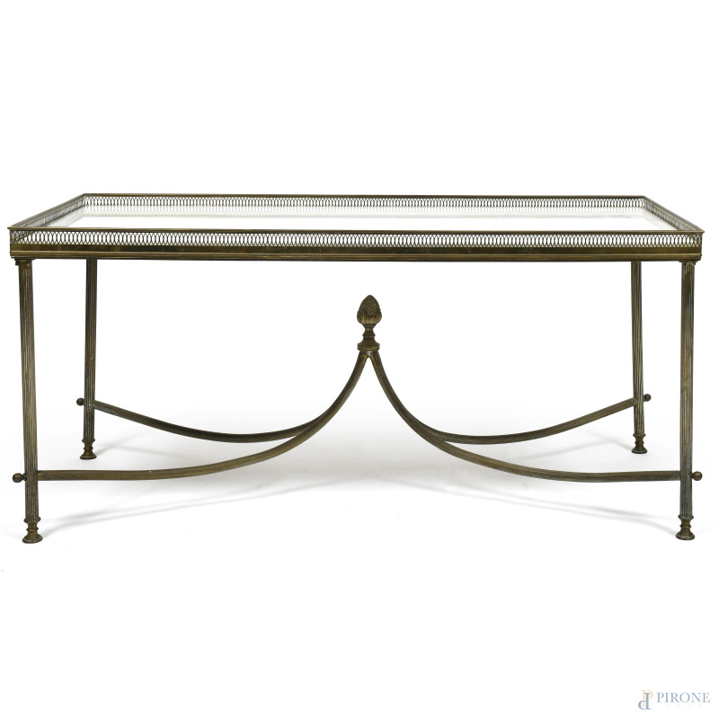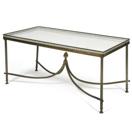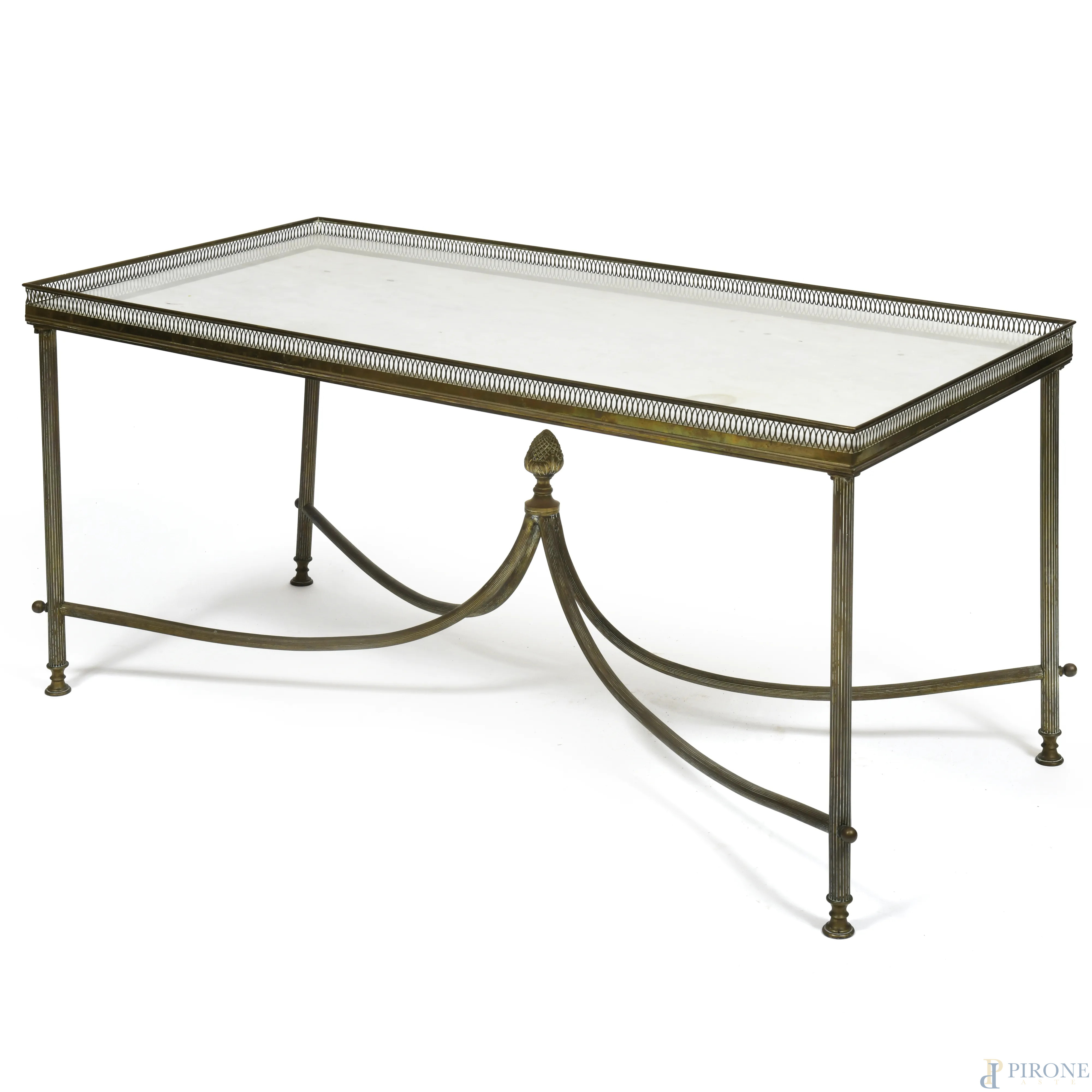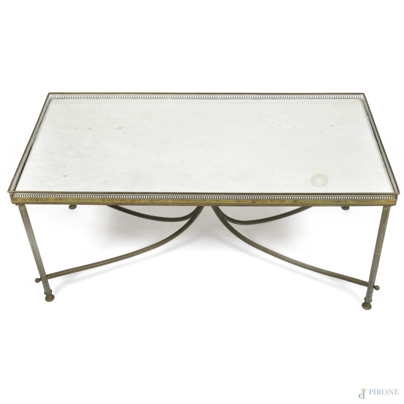 Tavolino con struttura in metallo e piano in marmo bianco, XX secolo, cm , (segni di usura, difetti, macchie, scalfiture)