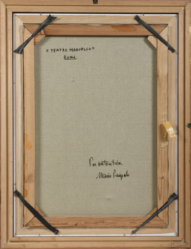 Teatro Marcello, XX secolo, olio su tela, cm 70x50, firmato in basso a destra, entro cornice, (piccola lacerazione della tela)