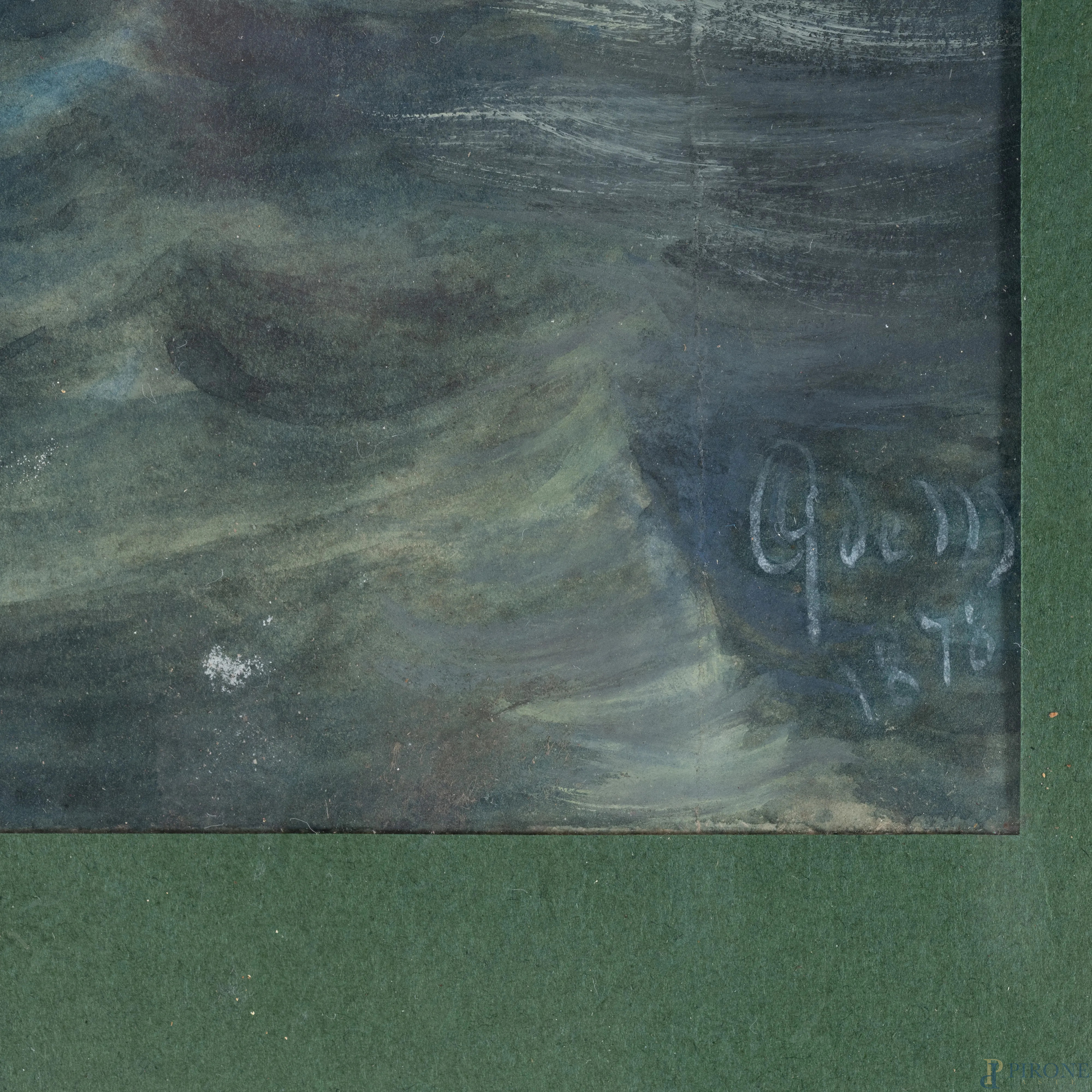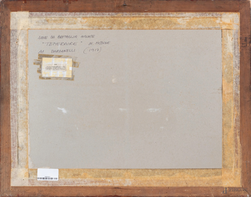 Temeraire nei Dardanelli, XX secolo, tecnica mista su carta, cm 32x46, titolato in basso a sinistra e firmato in basso a destra, entro cornice, (foxing e ondulazioni della carta)