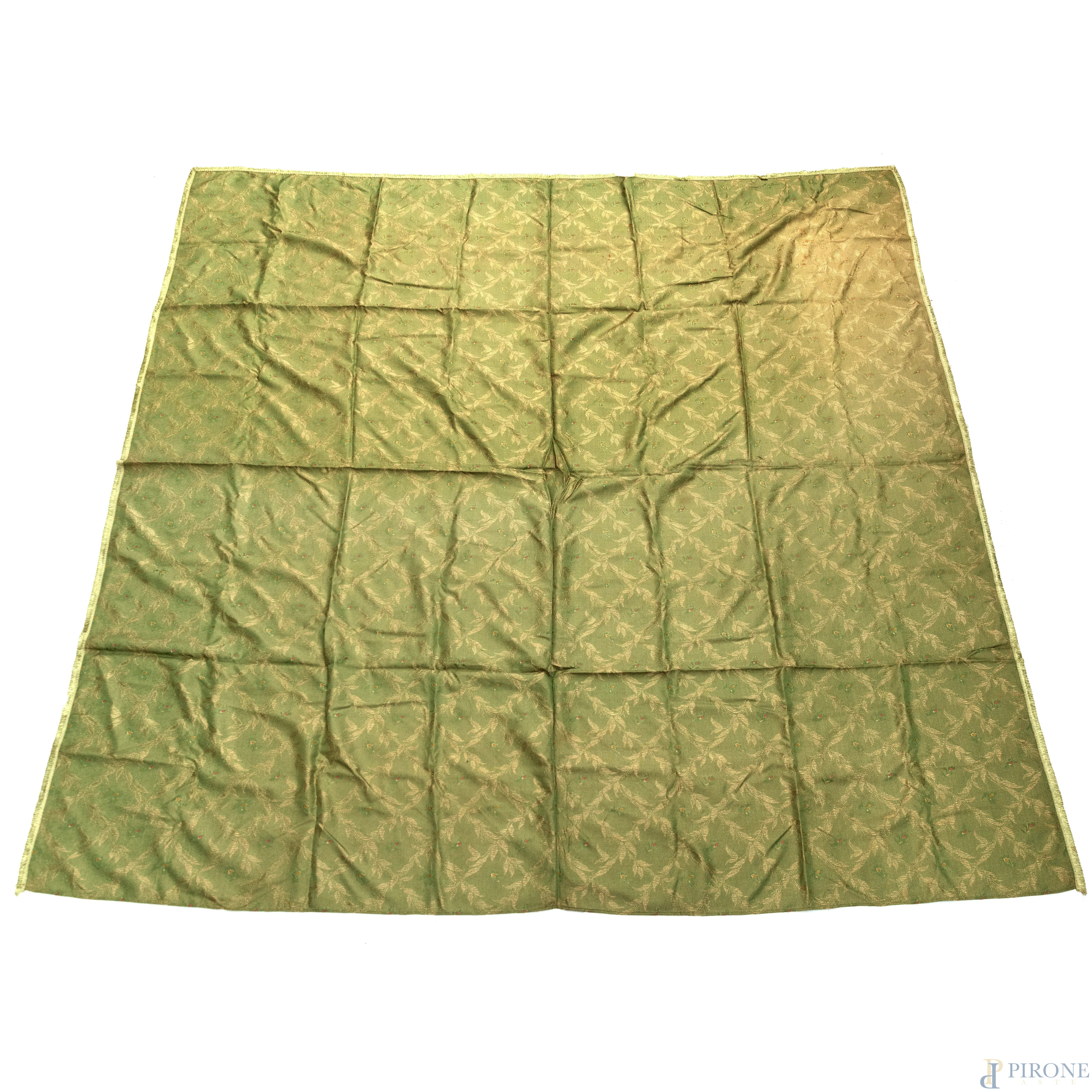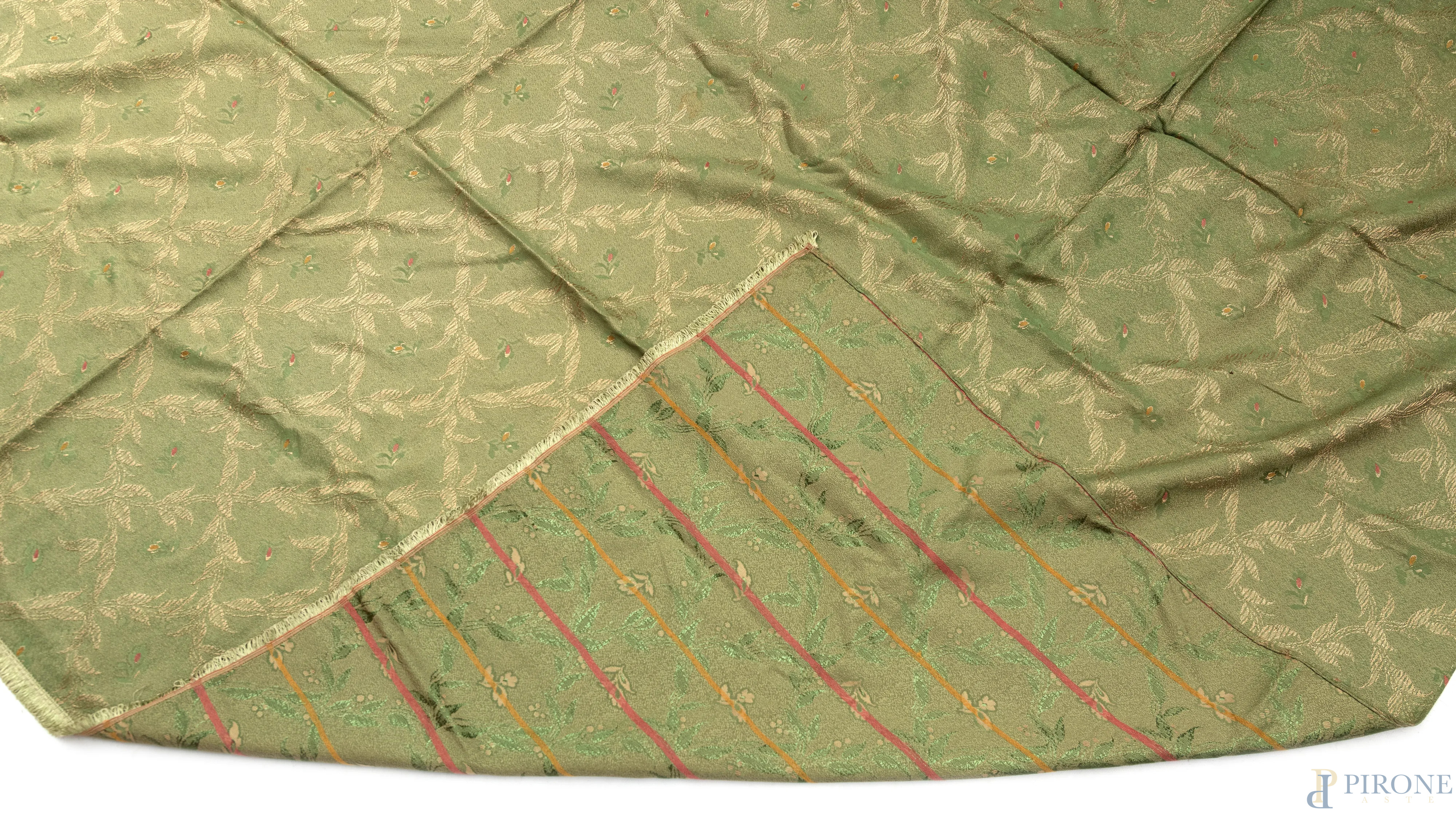Tessuto nei toni del verde con ricami, XX secolo, cm 247x253, (segni di usura, difetti)