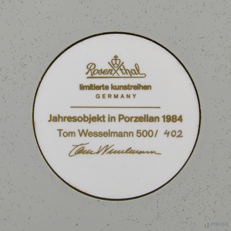 Tom Wesslemann x Rosenthal, Piatto dell'Anno Jahresteller 1984, es. 402/500, cm 48 x 52 x 3,5
