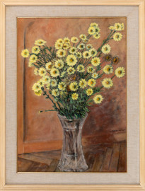 Vaso di fiori, XX secolo, olio su tela, cm 70x50, firmato in basso a destra, entro cornice