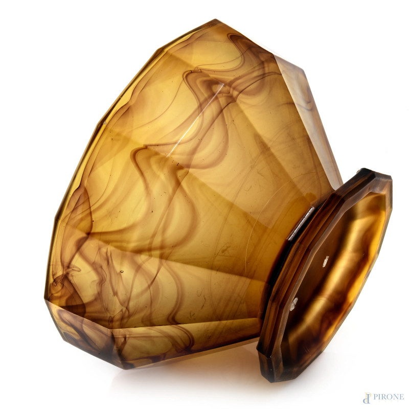 Vaso in vetro fumè nei toni dell'ambra, XX secolo, cm 12x20, (lievi segni di usura)