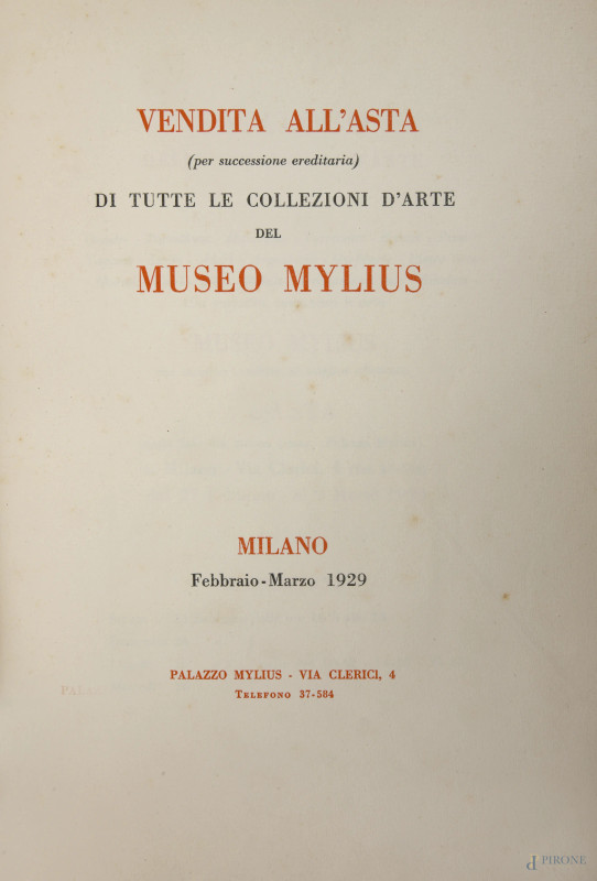 Vendita all'Asta di tutte le collezioni d'arte del Musei Mylius Milano, Febbraio Marzo 1929, Milano , (segni di usura, tracce di umidità)